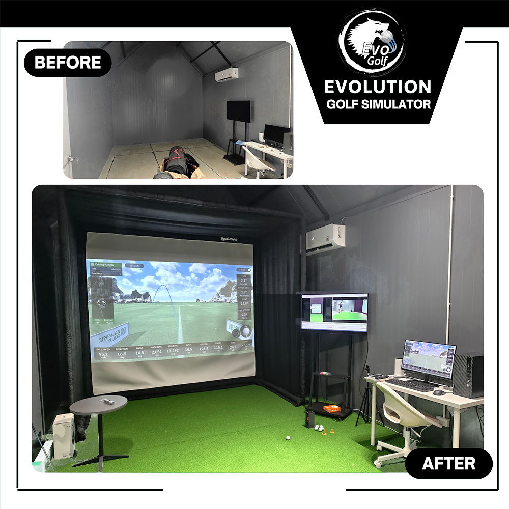 ⛳ เปลี่ยนบ้านให้เป็นสนามกอล์ฟส่วนตัวด้วย Evolution Golf Simulator (Full Set) สัมผัสประสบการณ์กอล์ฟระดับพรีเมียมได้ทุกเวลาที่ต้องการ กับชุดห้องกอล์ฟจำลองแบบครบวงจร ตอบโจทย์ทั้งการฝึกซ้อมและการออกรอบกับครอบครัว 🔥 โปรโมชั่นสุดคุ้ม! แบบ Full Set ครบจบในเซ็ตเดียว เพียง 98,000 บาท (จากราคาปกติ 148,000 บาท) 📦 อุปกรณ์ระดับพรีเมียมที่ได้รับในเซ็ต: Square Golf Launch Monitor: เครื่องจำลองการเล่นกอล์ฟอัจฉริยะ อ่านค่าแม่นยำ Projector 1080P (พร้อมระบบ Android TV): ให้ภาพสนามกอล์ฟคมชัด สีสันสมจริง พร้อมความบันเทิงครบครัน Golf Premium Impact Screen: จอรับลูกกอล์ฟเกรดพรีเมียม หนาพิเศษ 0.5 มม. ไร้รอยต่อ ซับแรงกระแทกเยี่ยมและสะท้อนภาพได้คมชัด Golf Enclosure (ขนาด 3x3 เมตร): โครงสร้างห้องกอล์ฟแข็งแรงทนทาน (สามารถปรับลด-เพิ่มขนาดให้พอดีกับหน้างานได้) พรมหญ้าเทียมเกรดพรีเมียม: พร้อมปูแผ่นยางรองซับแรงกระแทกด้านล่าง ขนาดกว้างขวาง 4x3 เมตร ให้สัมผัสการยืนที่มั่นคงเสมือนจริง 📐 ข้อมูลขนาดพื้นที่สำหรับติดตั้ง (Space Requirements): ขนาดพื้นที่ขั้นต่ำ: สูง 2.7 เมตร | กว้าง 3.5 เมตร | ลึก 5 เมตร ขนาดพื้นที่แนะนำ (ตีสบายที่สุด): สูง 3 เมตร | กว้าง 4 เมตร | ลึก 6 เมตร 💡 กังวลเรื่องขนาดห้อง? ไม่ต้องห่วง! หากพื้นที่มีจำกัด ทางร้านมีบริการให้คำปรึกษาและสามารถสั่งทำแบบ Make To Order เพื่อปรับแต่งโครงสร้างให้เข้ากับขนาดพื้นที่บ้านของคุณได้พอดี